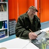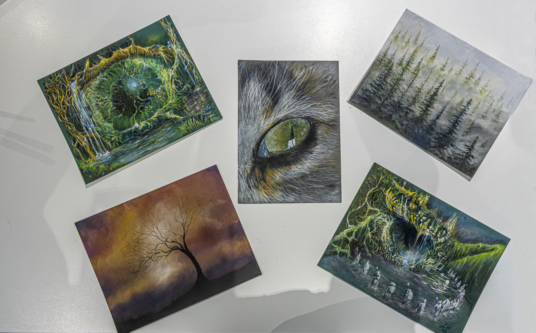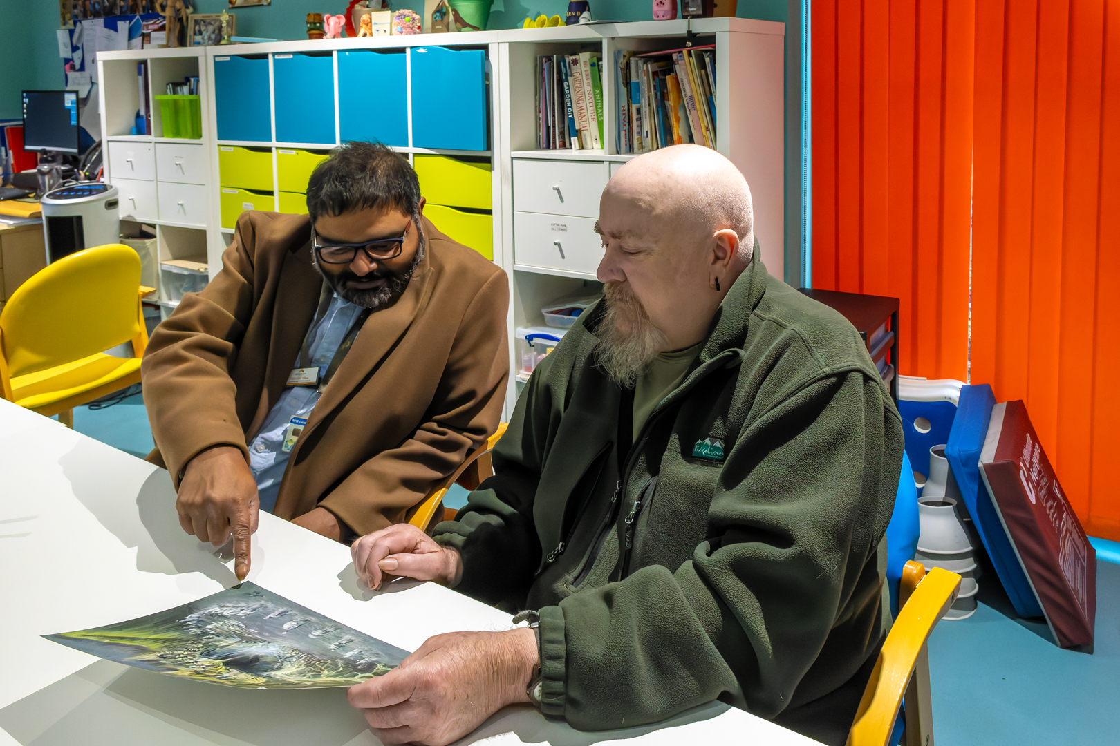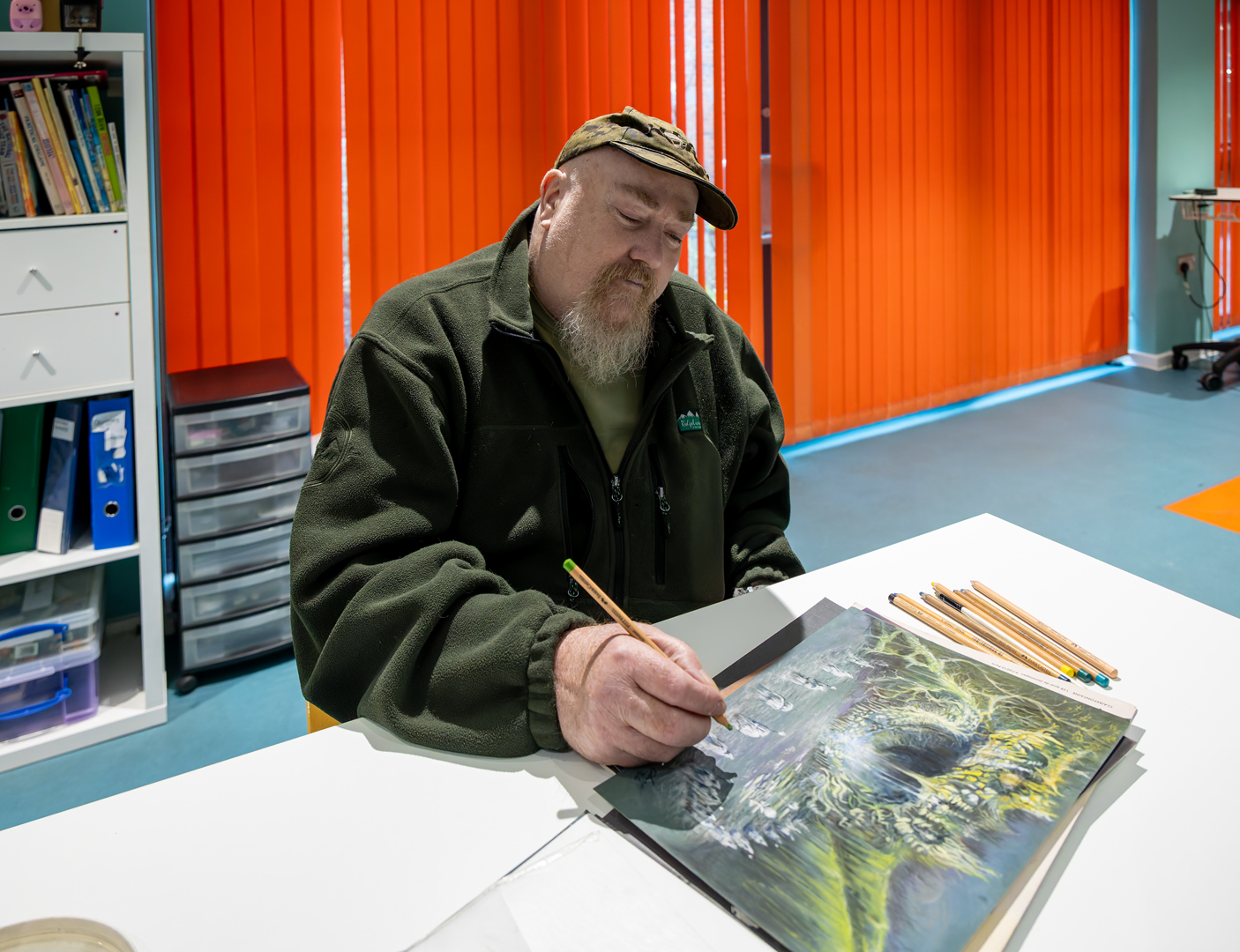 After being referred to the hospice for wellbeing support but MacMillan, he began working with our spiritual care lead, Ben, to achieve his dream of a gallery opening. Ben said: “Initially when I start work with somebody, I go through their life story, which is what I did with Carl and Carl’s Wife, Nicole. The obvious question when he told me he had never shown the world his art was, “would you like to do that?” – and that’s when we got onto the idea of doing a display in a gallery! The gallery were absolutely astounded by the quality of his work. I knew, Nicole knew, and Carl kind of knew, but wasn’t 100% sure, that people would like his work.